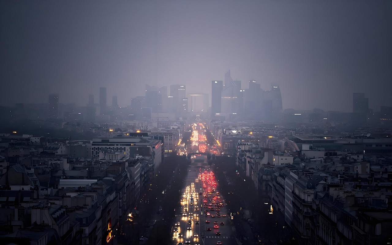 在楼顶注目,成千上万的雨滴坠落,每一滴都是一根秒针。